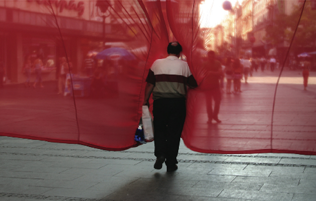 red, transparent curtain, 2004