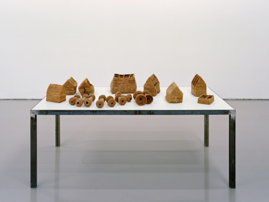 videoloop, chewed bread, table, chair, 2000