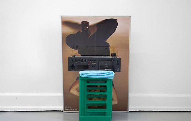 NAD tape player, tablecloth, Danish milk crate